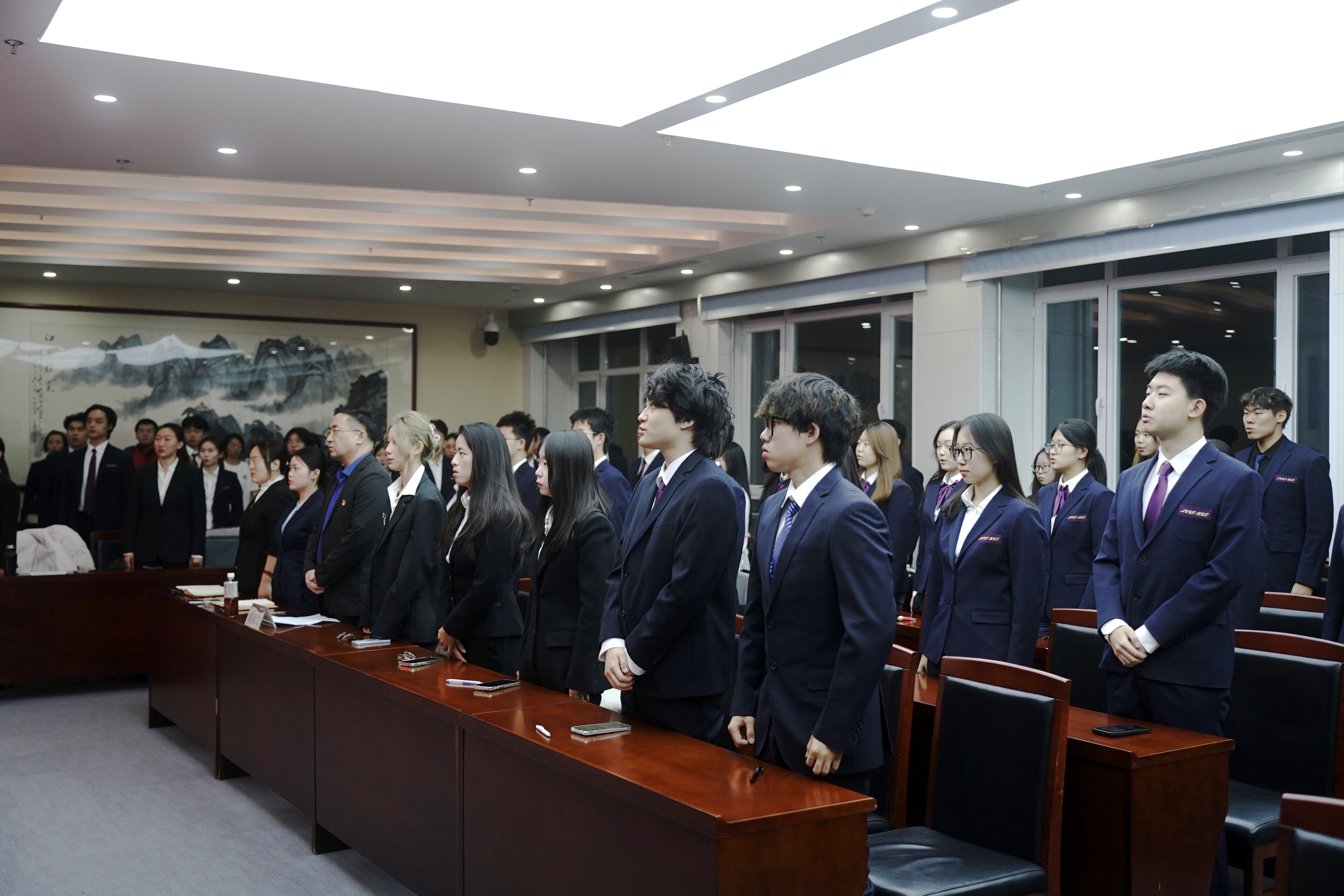 大会伊始,全体与会人员起立肃立,高唱中华人民共和国国歌。激昂的旋律回荡在会场,凝聚着青年学子的爱国情怀与责任担当,为本次大会拉开了庄严序幕。